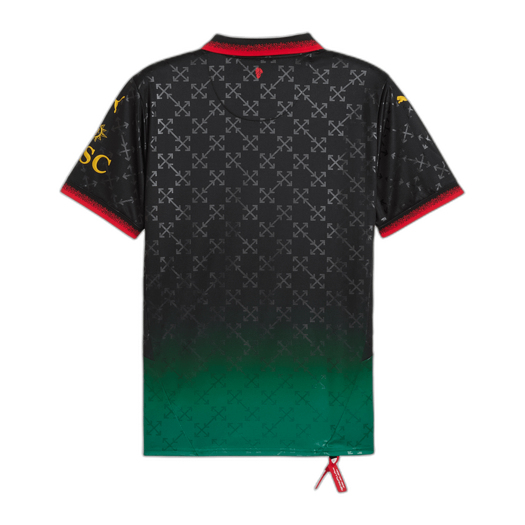 Where football meets high fashion. The AC Milan x Off-White 2025 black limited edition fourth jersey blends the iconic style of AC Milan with Off-White’s signature bold designs. Crafted from Puma dryCELL material for comfort and performance, this exclusive jersey features unique limited edition design.