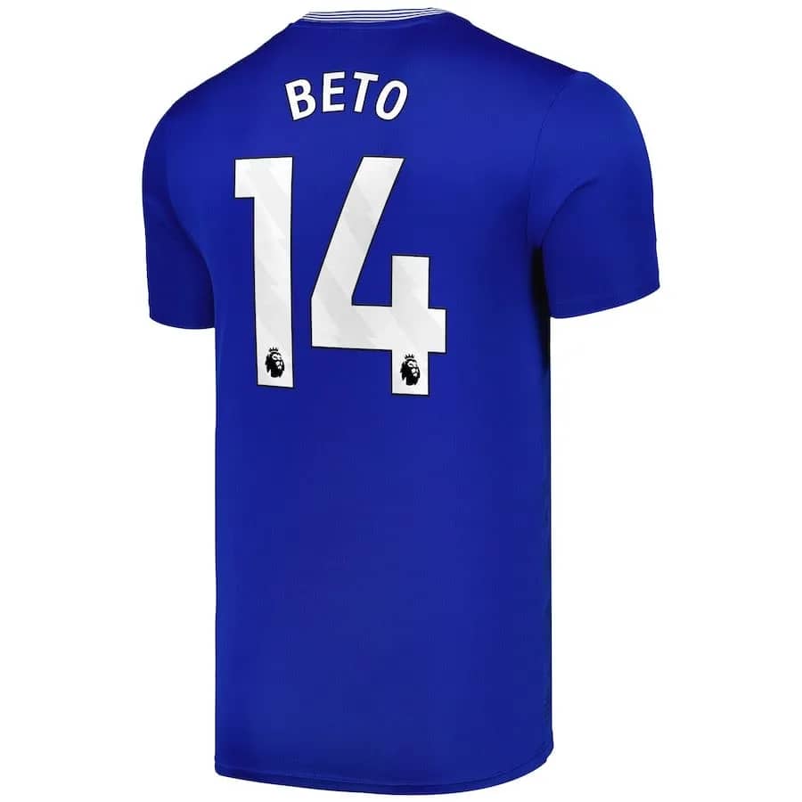 Elevate your game with the Beto Everton 2024/25 home jersey. Featuring a bold blue design and crafted from high-quality, breathable fabric, this jersey combines standout style with comfort for every fan.