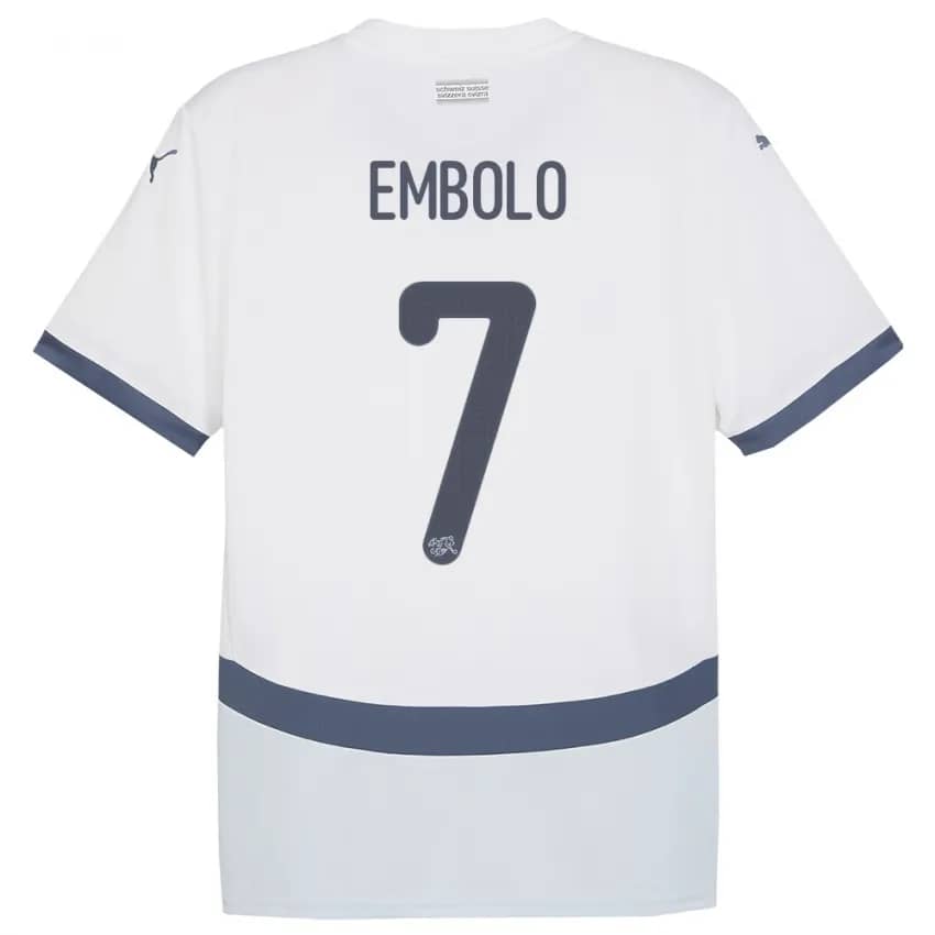 Cheer on Switzerland with the Breel Embolo Switzerland 2024/2025 away jersey. Tailored for Euro 2024, this jersey blends modern design with premium comfort, making it an essential choice for any dedicated fan.
