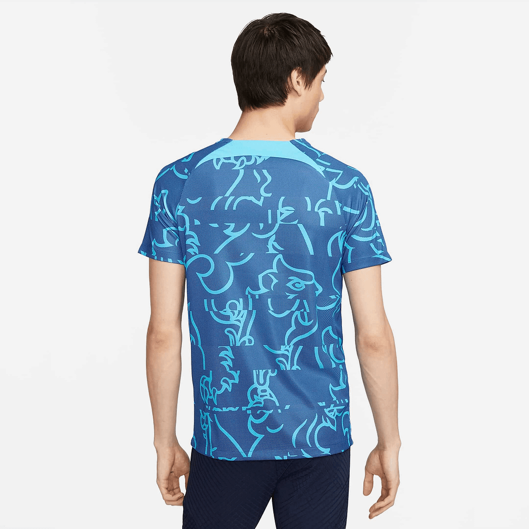 The Chelsea FC Top gives you the same look as your favorite players. Sweat-wicking technology is lightweight and breathable to help keep you dry while you’re warming up for the match. This product is made with 100% recycled polyester fibers.
