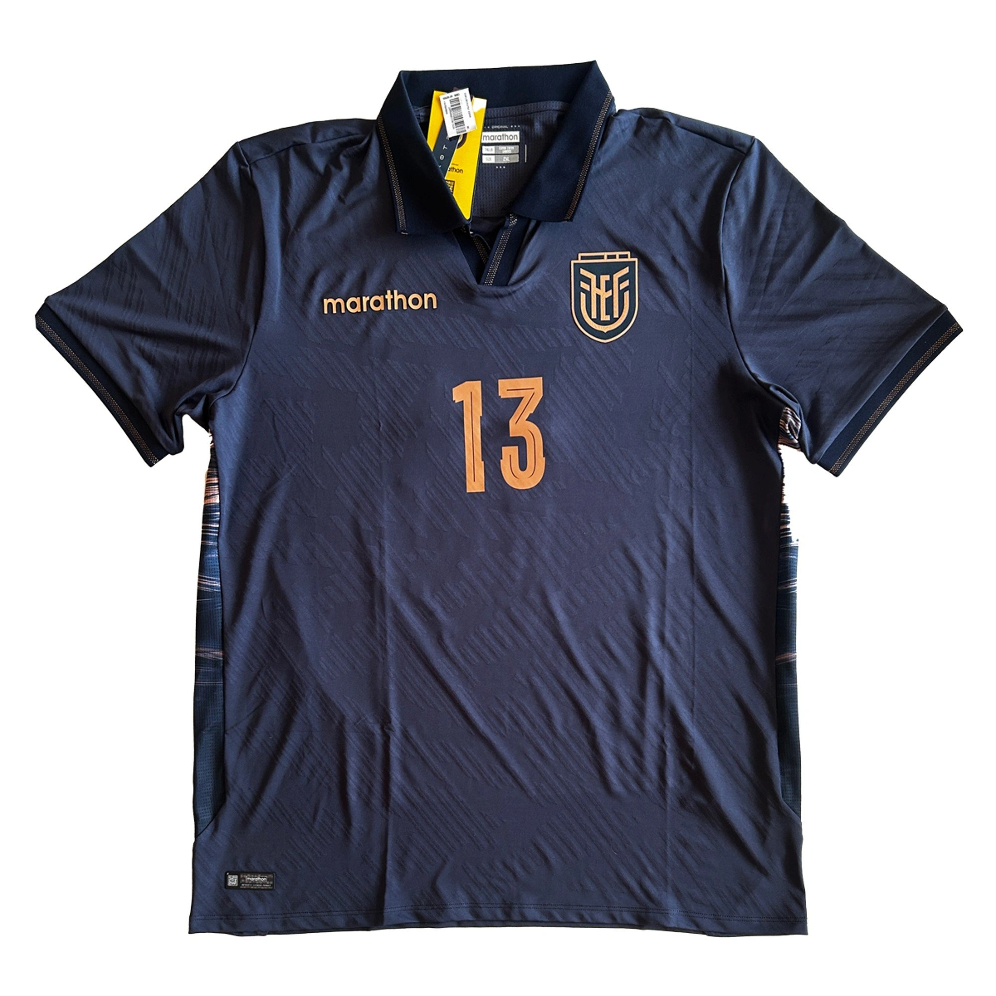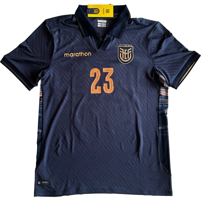 Enner Valencia Ecuador 2026/27 Away Jersey by Marathon introduces a sleek, modern aesthetic to the La Tri collection. Marathon designers selected a deep navy base to represent the vast Pacific coastline of Ecuador. Elegant white and gold accents flow through the design for a premium finish. Supporters wear a piece of history that mirrors the legendary scoring record of Enner Valencia. This Enner Valencia Ecuador 2026/27 Away Jersey by Marathon perfectly blends national pride with elite sports performance.