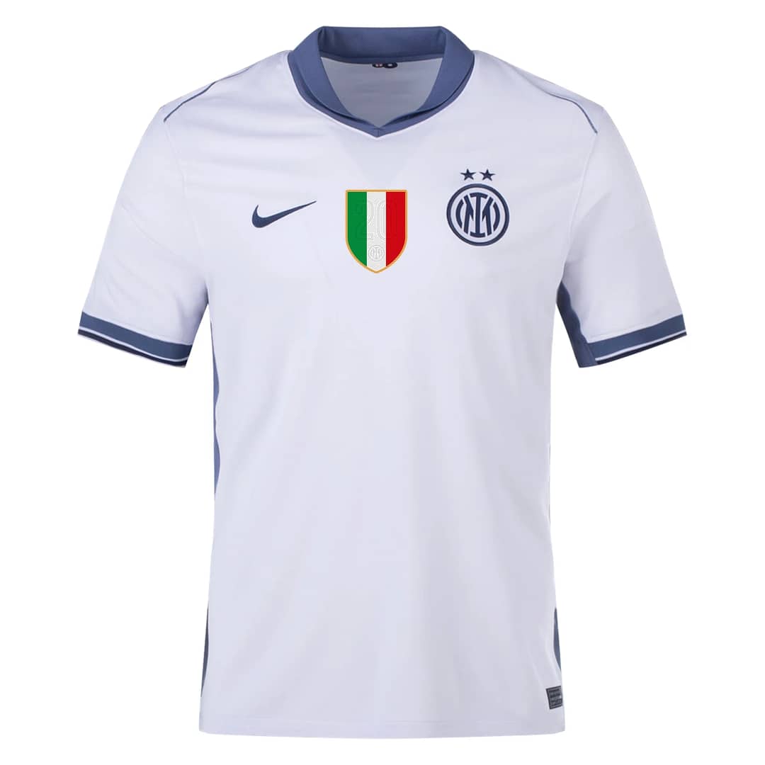 Show your Inter Milan pride with the 2024/25 away jersey, a sleek and bold look for any true fan. Crafted from premium lightweight material, this jersey keeps you comfortable whether you’re in the stands or on the field. Its striking white design, accented with signature blue and black details, makes a statement that celebrates the legacy of Inter Milan. It’s perfect for anyone ready to back their team with style. Join the Nerazzurri in this must-have piece of Inter Milan heritage.