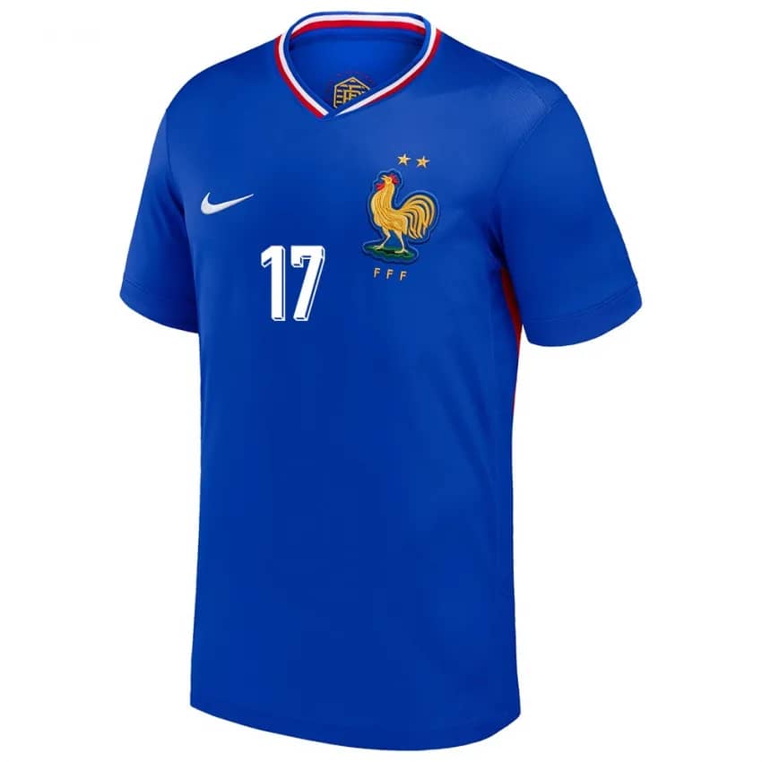 Cheer for French football with the Jordan Veretout France 2024/2025 home jersey. Featuring France’s classic colors and a contemporary design, this jersey provides comfort and style, perfect for fans during Euro 2024.
