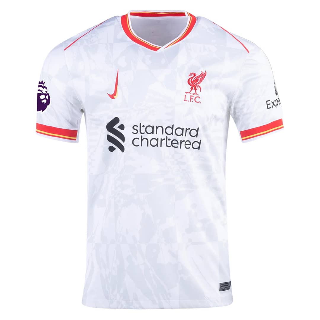 Experience the thrill of Anfield with Luis Díaz’s Liverpool 2024/25 third jersey. This striking jersey features a bold blend of deep navy and vibrant red, embodying the spirit of the Reds. Its unique design showcases intricate patterns inspired by the club’s rich history, making it a standout piece for true supporters. Crafted from premium, moisture-wicking fabric, it ensures comfort and breathability as you cheer on your team. With the iconic Liverpool crest proudly displayed, this jersey is not just apparel; it’s a declaration of loyalty and passion for Liverpool FC. Wear it with pride and show your unwavering support for the Kop!