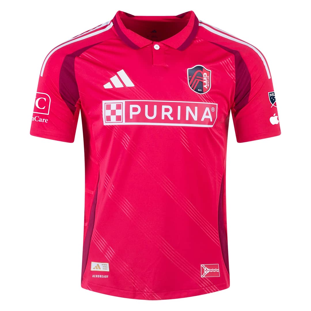 The Marcel Hartel St. Louis City SC 2025 Authentic Home Jersey by adidas is known as the Forever CITY Red kit. It honors the team’s strong soccer history and lively community. This bright red jersey has a sleek look with small, slanted stripes. It pays tribute to the five players from St. Louis who helped the U.S. Men’s team beat England in the 1950 World Cup. This win was a big moment in soccer.