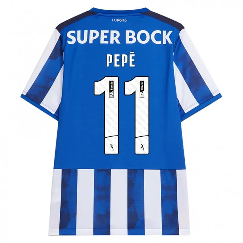 Represent Pepê with the FC Porto 2024/25 home jersey. Showcasing the iconic blue and white stripes, this jersey combines comfort and style, making it perfect for match days or casual wear as Pepê shines on the pitch!