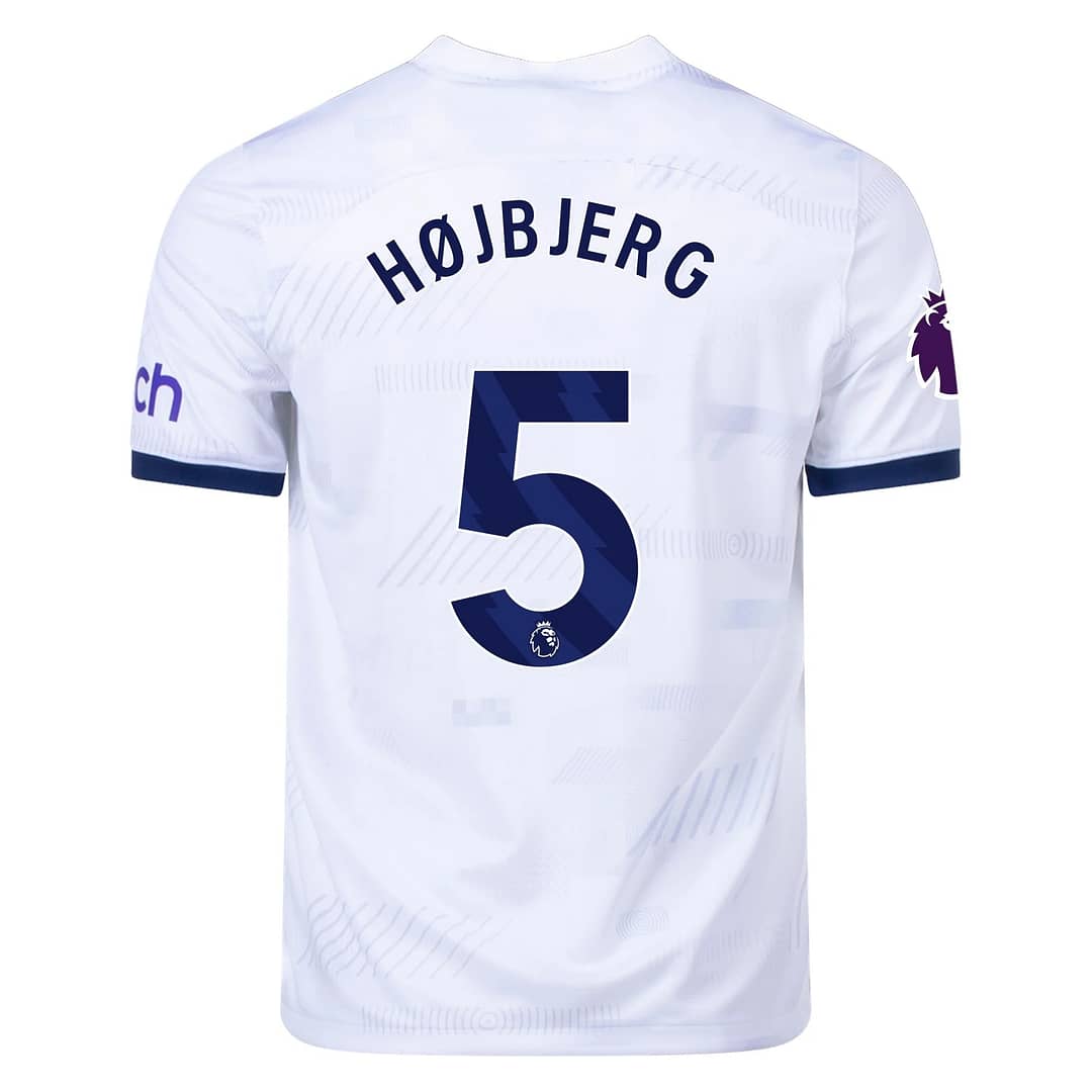 The Pierre-Emile Højbjerg Tottenham 2023/24 Home Jersey. Embrace the spirit of Spurs with this classic white and navy jersey featuring Højbjerg’s name and number 5. Designed for comfort and style, it’s a must-have for every Tottenham Hotspur fan. Show your support in the most authentic way possible – order yours today and wear the pride of the Lilywhites.