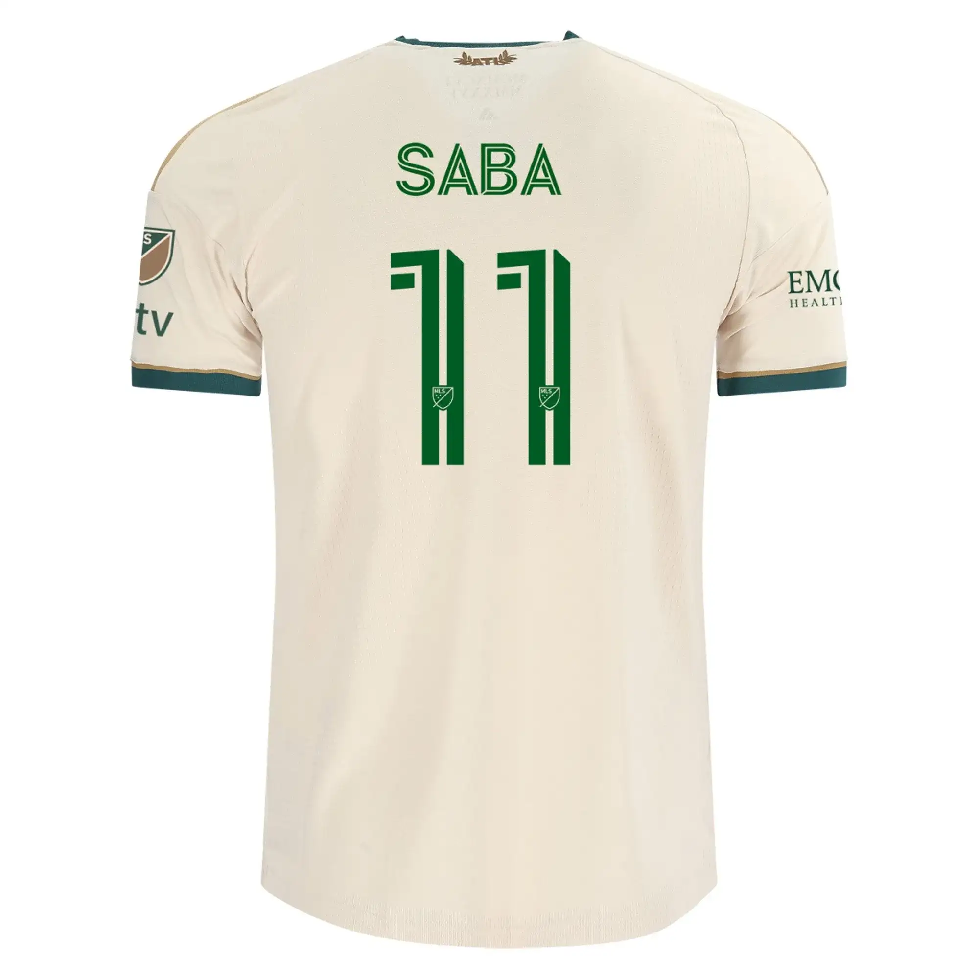 Adidas has opted for a crisp “Linen” cream as the base color of this masterpiece. A bold green sash is emblazoned across the chest. The sash has a leaf design to honor Atlanta’s famous tree canopy. The gold club crest is as shiny as an Olympic medal. Lobzhanidze sports this very same high-performance kit in every away fixture.