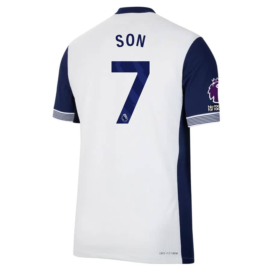 Show your Spurs pride with the Son Heung-min 2024/25 authentic home jersey. Made from lightweight AeroSwift fabric, it keeps you cool and comfortable while you cheer on your team. Featuring Son’s number 7 and the iconic Tottenham crest, this jersey blends classic white with bold navy accents for a standout look. Grab yours today and support Son and Tottenham in style!