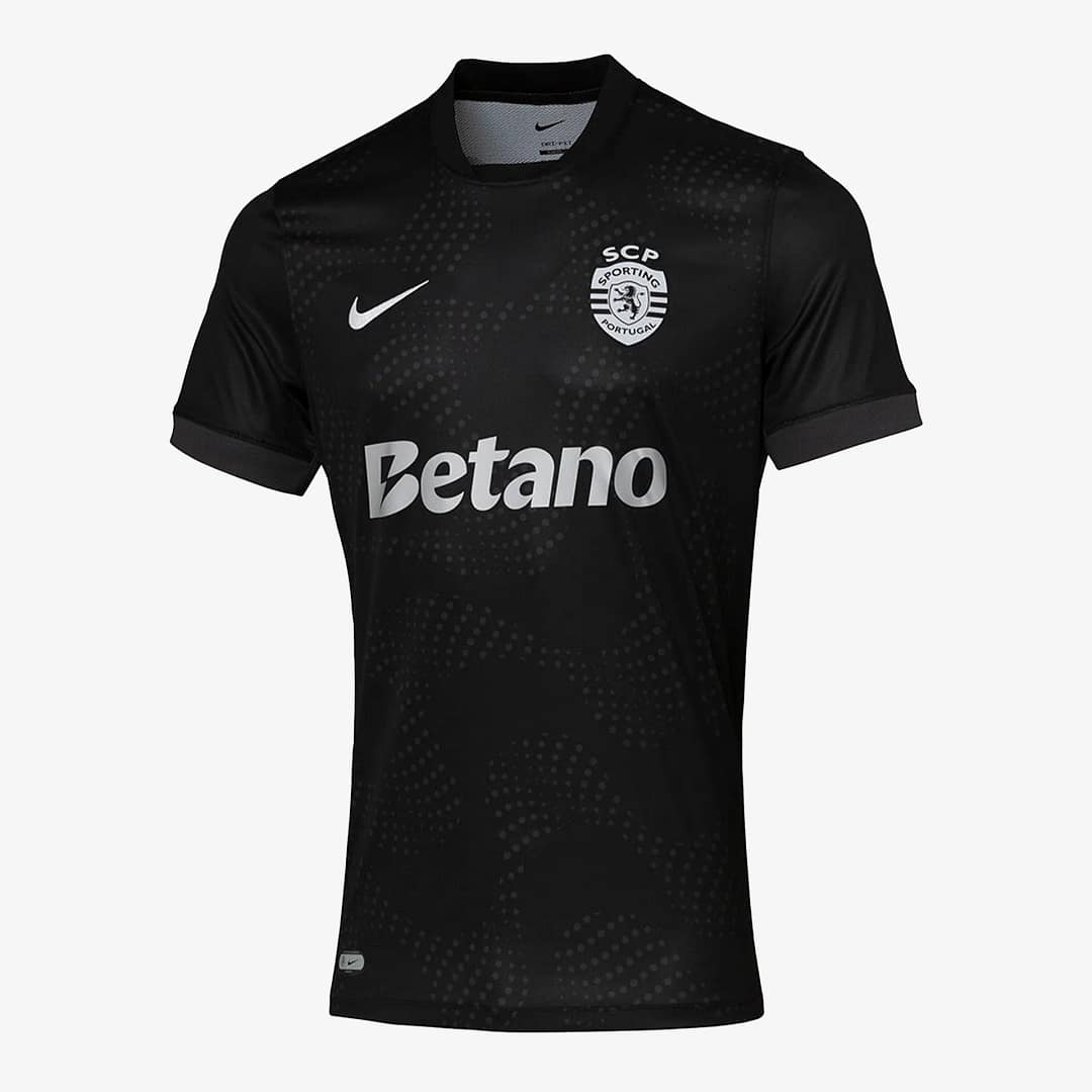 Wear Nike’s Sporting Clube de Portugal away jersey for 2025/26. The shirt has an all-black basis that exudes elegance and strength. It features a modest dotted pattern on the front and sleeves for texture and flair. The CP crest appears in silver monochrome on the chest. Nike honors fans by printing the phrase “REFLETE A TUA PAIXÃO” (“Reflect your passion”) inside the collar. The Dri-FIT recycled polyester fabric provides both breathability and performance. Wear it with black shorts and matching socks for the whole away look.